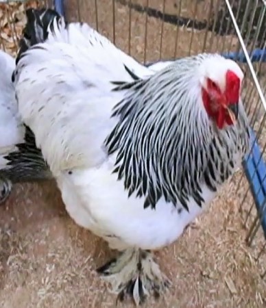Brahmas weiß-schwarz-columbia, Brahma blanc herminé noir, Expo Avicole Strasbourg 2014