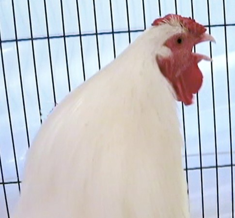 Schweizer Nationale Geflügelausstellung, 20.-21. Dezember, Delémont, Schweiz. Hahn kräht.