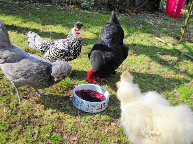 Heidelbeeren, Zerkleinerte Trockenfische, Blautinktur, Calciumpräparat.