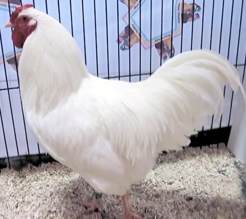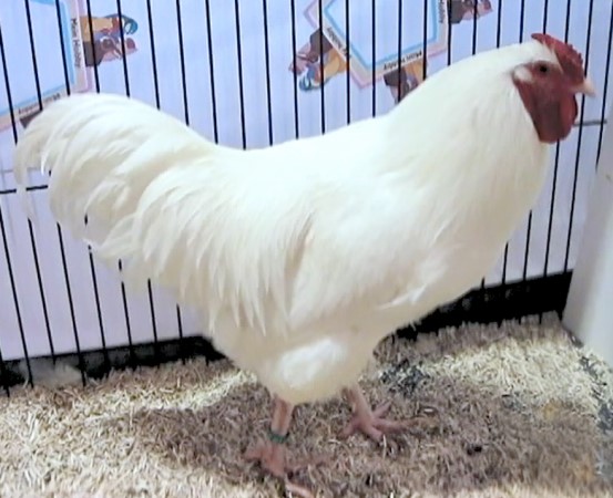 Schweizer Nationale Geflügelausstellung, 20.-21. Dezember, Delémont, Schweiz. Hahn kräht.